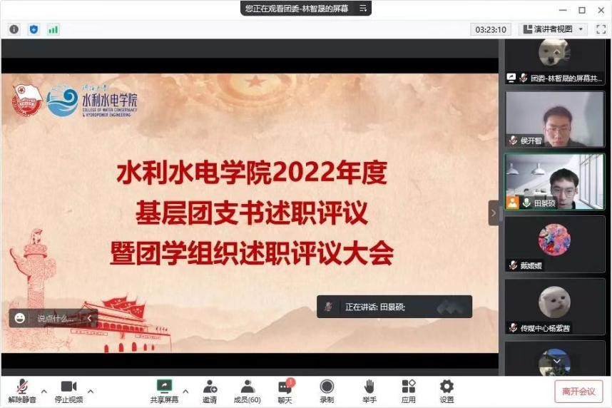 凝水聚心,以科学严谨为要求提升组织力。深化组织改革,规范开展团学组织换届工作,定期召开述职总结评议会,优化组织结构。常态开展团支书技能培训10余次,指导基层团组织落实“三会两制一课”,提高办事能力。年度发展团员5名,党员61名,积极做好推优入党、推优入团的培养和教育工作,智慧团建100%录入。